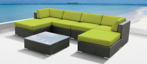 Luxxella Outdoor Patio Wicker MALLINA Sofa Sectional Furniture 7pc All Weather Couch Set PERIDOT