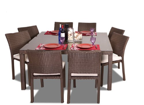 Genuine Ohana Outdoor Patio Wicker Furniture 7pc All Weather Dining Set with Free Patio Cover