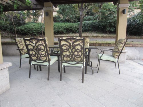 7pc Cast Aluminum Cushioned Patio Dining Set - Stacking Chairs