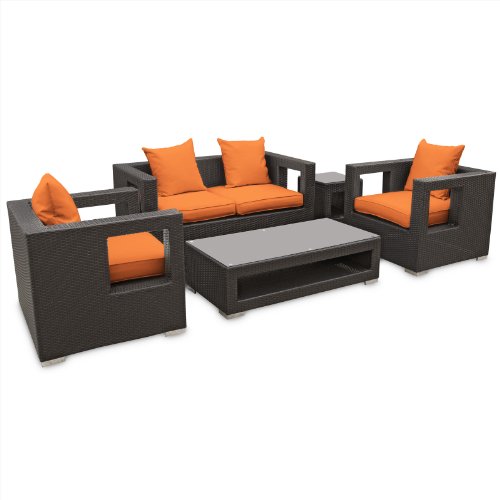 - LexMod Lunar Outdoor Wicker Patio 5 Piece Sofa Set in Espresso with Orange Cushions is masterful or even a good inventory.