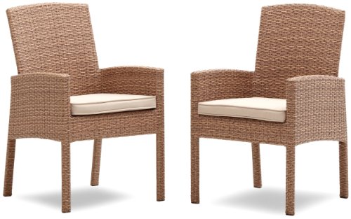Strathwood Griffen All-Weather Wicker Dining Arm Chair, Natural, Set of 2