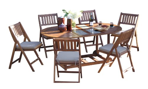 Outdoor Interiors S10666G 7-Piece Oval Fold and Store Table Set with Cushions and Cover